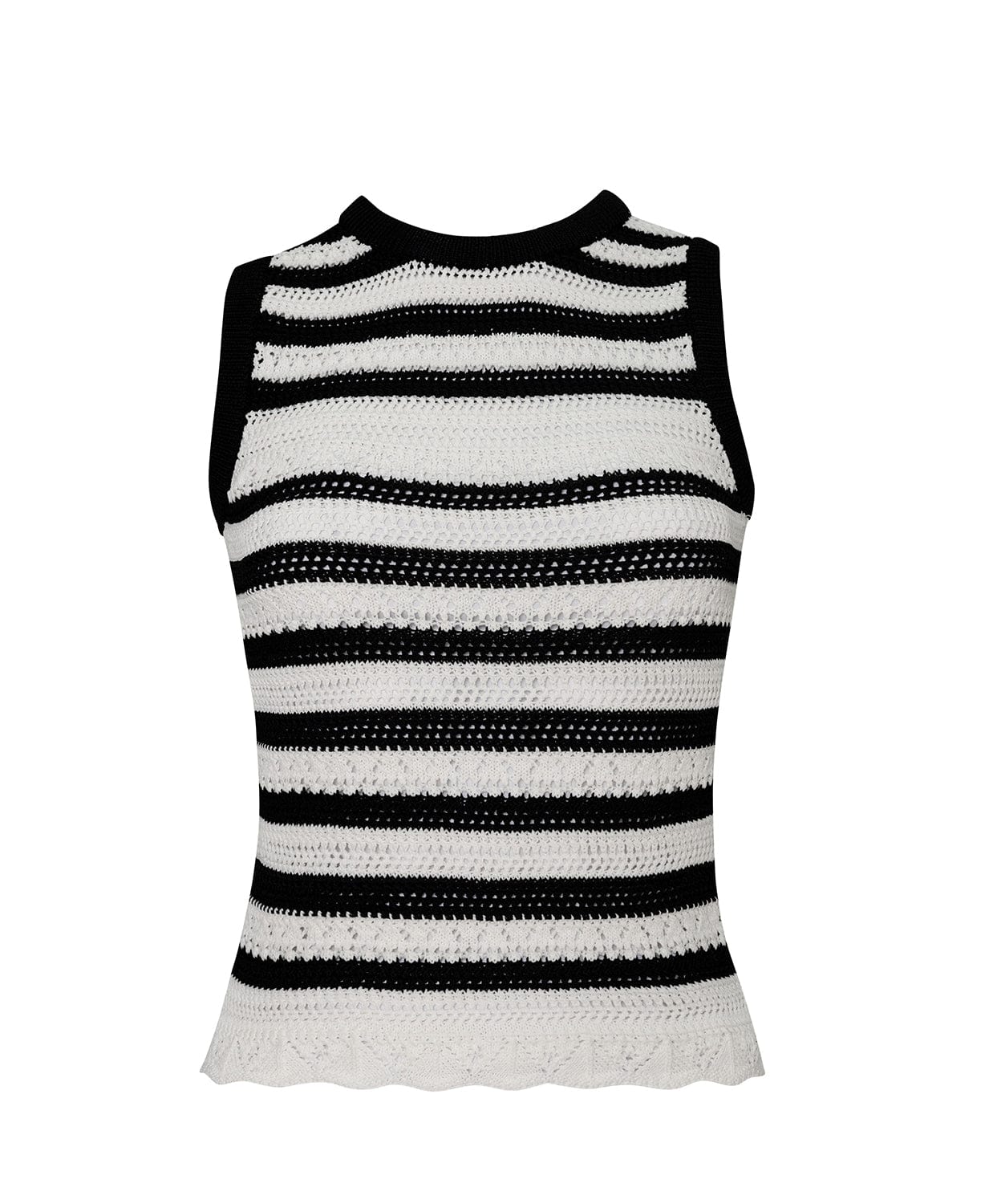 Sun-kissed season starts with our striped sleeveless crochet top. Each component of this top is simple yet sophisticated, from the high neckline to the black and white open-knit design. For a polished summer ensemble, wear it with our Long Crochet Skirt.