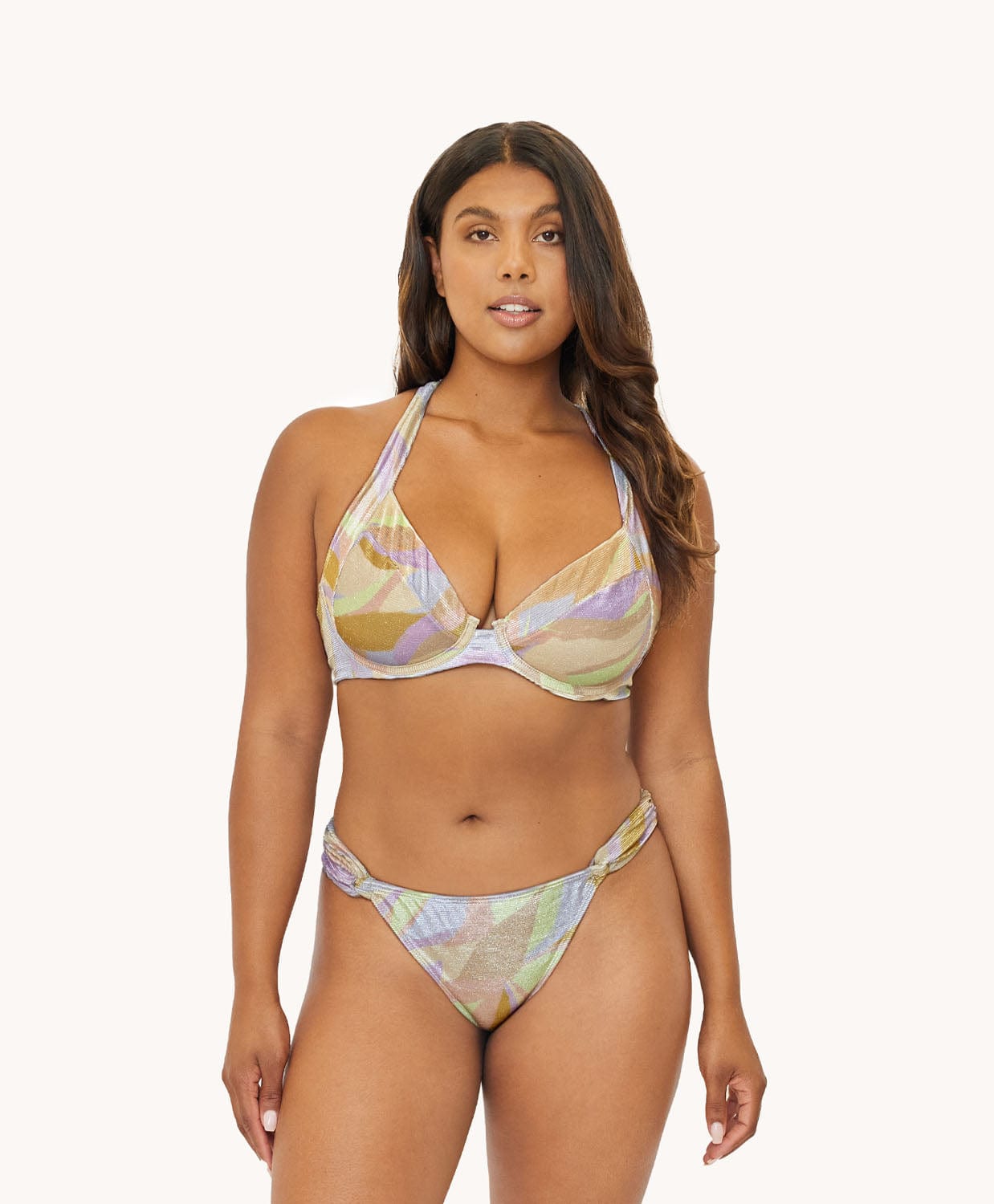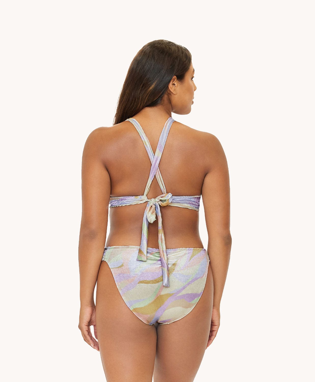 Elevate your swim style with our Sorrento Fanned Bikini Bottom. Its flattering side tabs and versatile design make it a perfect match for any top, especially our Sorrento Perla Halter. Available in cheeky Brazilian or full-coverage cuts to suit your preference. Ideal for beach enthusiasts seeking a blend of style, comfort, and environmental consciousness.