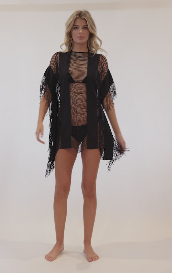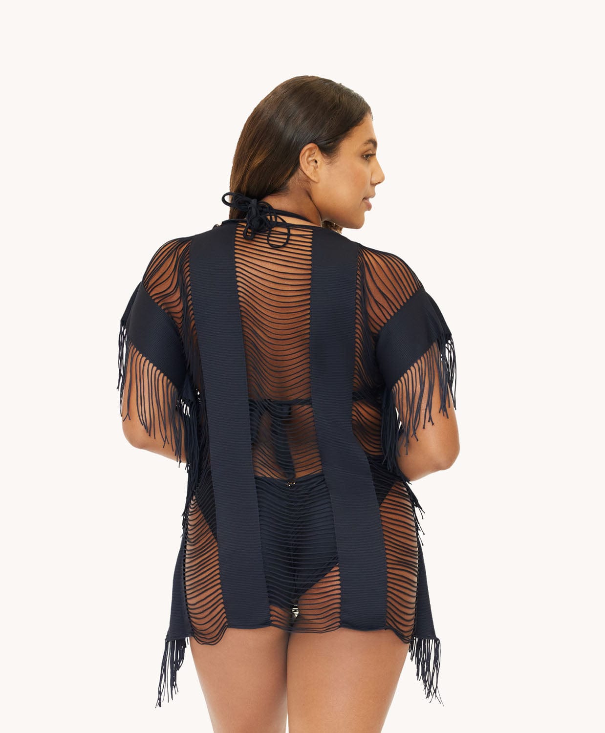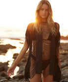 An infusion of bohemian elegance on your next beach getaway. This versatile tunic effortlessly transitions from a chic festival top for the more free spirited, to stylish beach cover up while you catch the sunset. Whether it’s dancing to the rhythm of music or enjoying the sun and sand, this tunic feels effortlessly fashionable and essential for any adventure. Also available in Midnight Black.