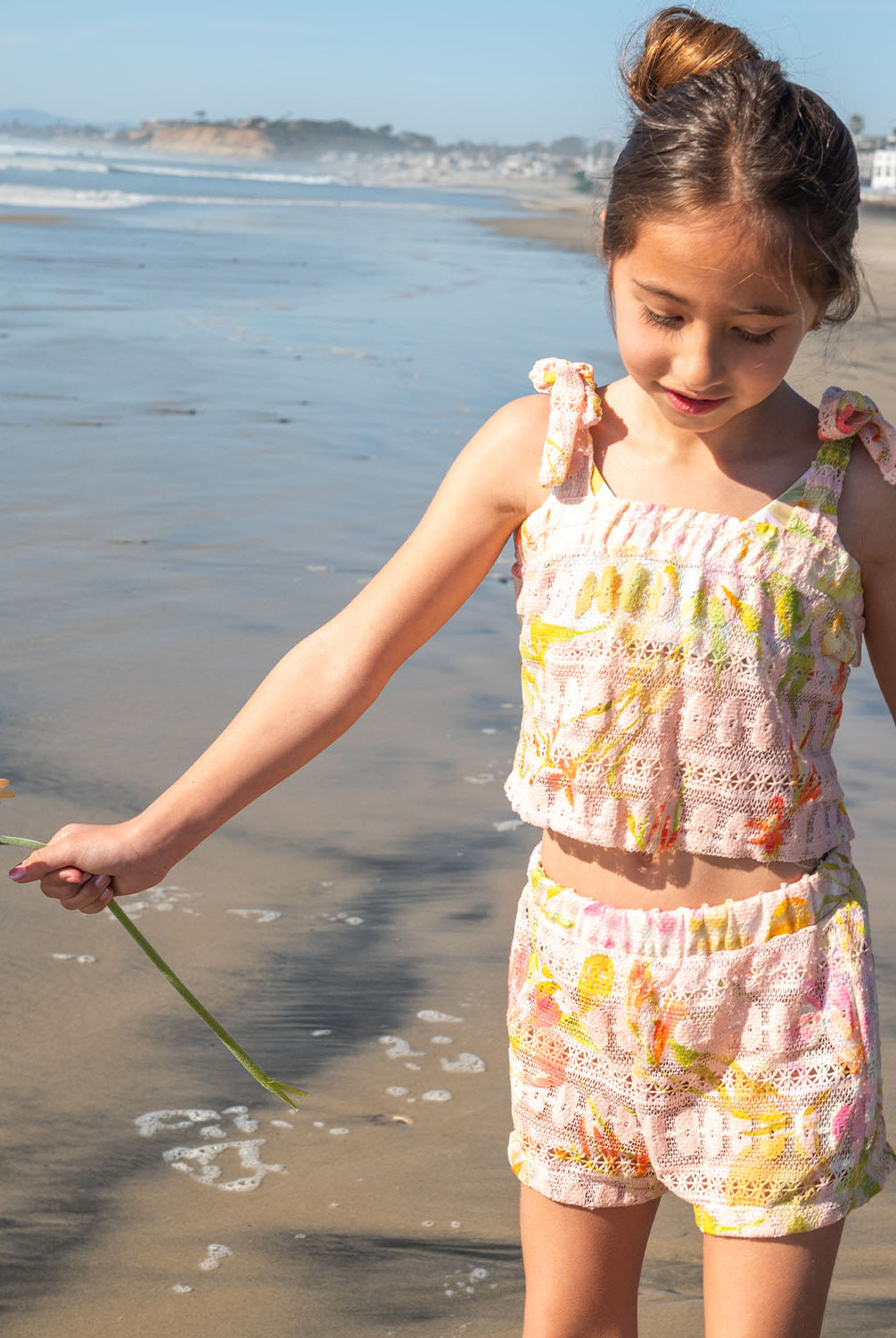 The luxury continues beyond the water's edge. Our enchanting coverups not only offer essential sun protection but also elevate your child’s beachwear with an extra dash of style. Our apparel and swimwear collection for kids features adorable dresses and breezy shorts to rompers and cute tops, ensuring that your child's beach day ensemble is nothing short of extraordinary. The impeccable blend of quality, style, and functionality creates a look that truly stands out.