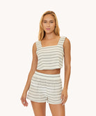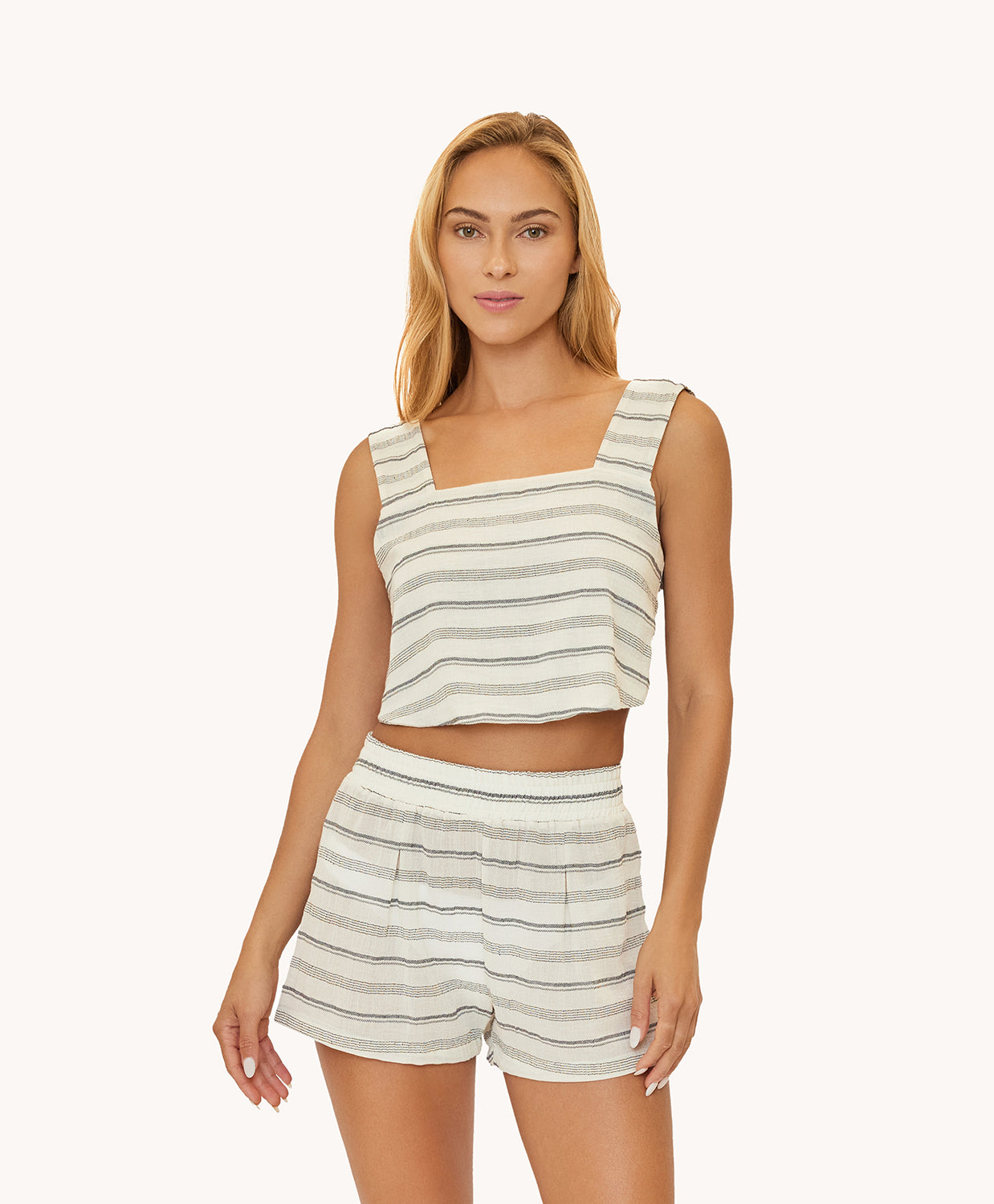 Crafted from high quality, breathable fabric, the Blair top boasts a flattering, but flirty cut, that ensures comfort and ease of movement. Whether you are exploring, lounging, or enjoying a seaside dinner, this online exclusive makes every moment of your getaway playfully elegant. Complete the ensemble with the Blair Short or Sammy pants.
