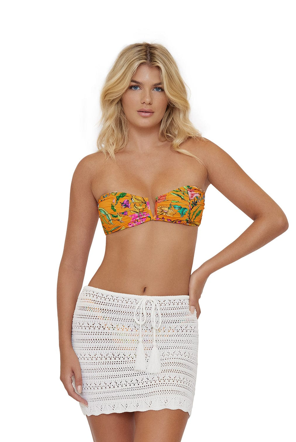 Embrace summer elegance with the sleeveless open-knit Crochet Top. Tailored with a sophisticated high-neck, it’s ideal for those seeking an effortlessly put-together look. This chic top pairs well with our matching Crochet skirt. Together they make a timeless must-have ensemble that embodies the essence of summer.