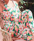 The Tropical Floral Racerback Tank is a lightweight loungewear staple designed for comfort and ease. Featuring a flattering scoop neckline and an airy winged racerback, it offers a relaxed silhouette that moves with you. Perfect for slow vacation mornings or unwinding at home, this piece brings a touch of polish to your lounge routine. Pair it with the matching wide-leg pant for a coordinated look that feels effortlessly refined.