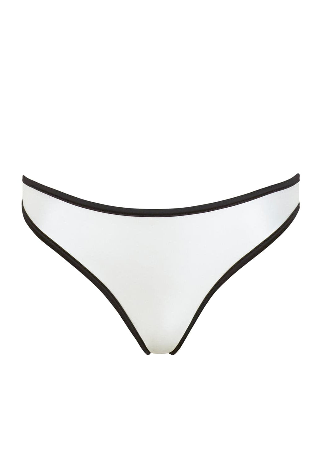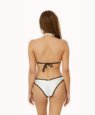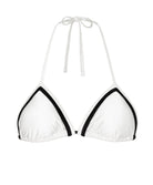 The essence of sporty sophistication makes this bikini top particularly unforgettable. A delicate ebb and flow of black and white color-block and supportive stylishness. Produced in collaboration with Haley Kalil as an ode to celebrating confidence and individuality this summer and every season.