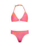 Introduce a slice of paradise to her swimwear collection with our Del Mar Palms Little Donna Bikini for little girls. The halter top, highlighted by a charming pink ring detail at the center, pairs perfectly with a classic scoop bottom. This vibrant, pink and orange tropical-print two-piece is designed for sun-filled days and fun in the water, making it a delightful pick for any young beach enthusiast.