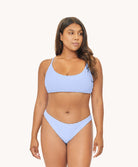 Embrace sporty sophistication with our Rosa Bikini Top, a perfect blend of style and support. Its over-the-shoulder design ensures a secure and comfortable fit, ideal for any beach activity. Crafted from luxurious terry cloth material, it features a chic powder blue checkered pattern, elevating this top beyond the ordinary. A must-have for fashion-forward beachgoers.