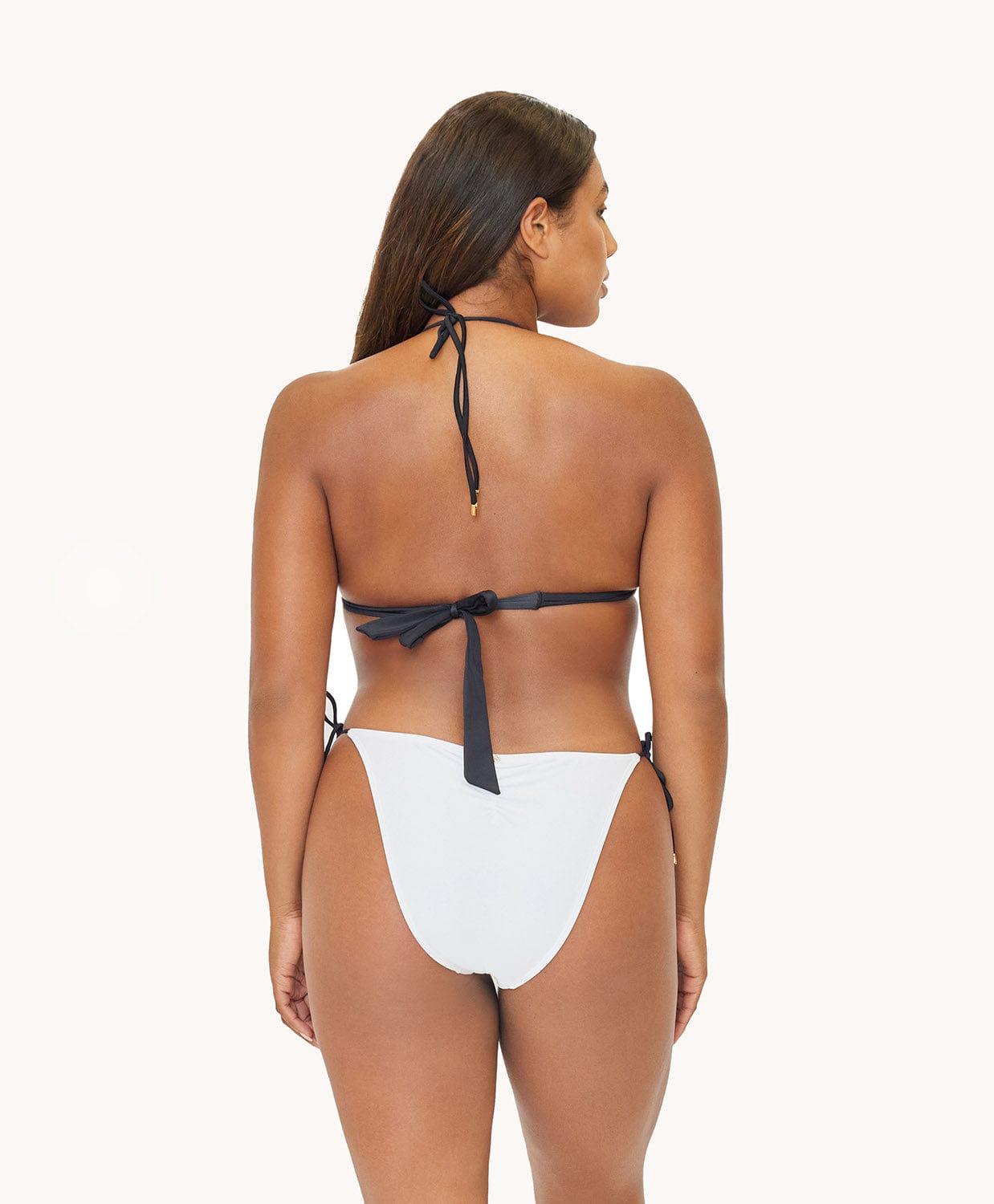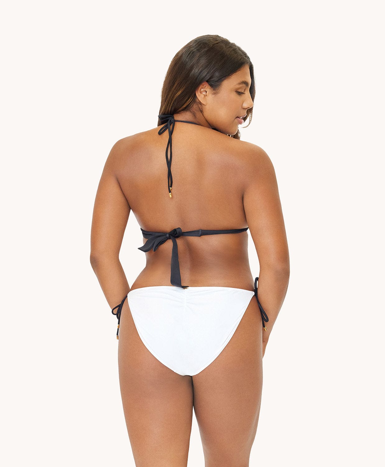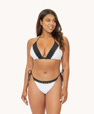 Slide into our Midnight Studded Mix Up Bikini Bottoms and amp up your beach game. Matching our Studded Triangle Mix Up Bikini Top, these black and white tie-sides feature gold stud accents for a subtle punch. Adjustable for the perfect fit, they're the staple piece for any sun-seeker with an eye for detail and a love for the classics. Available in a cheeky, Brazilian cut as well as more traditional full coverage. Made of recycled fabric.