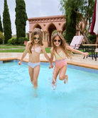 Our little girls’ Sunset Skies Lettuce Edge Bikini makes for a picture-perfect poolside moment. This charming set features an adorable pastel multicolor fabric that's as timeless as the evening sunset. Playful lettuce edge stitching adds a sweet feminine touch for your little one from moment to moment on your next getaway.